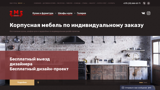 | AI-анализ | The website is a custom furniture store specializing in the production and sale of built-in kitchens, wardrobes, and cabinets according to individual design projects. The store offers delivery and assembly services. The main products include various types of kitchens, such as corner and L-shaped models, and wardrobes with different fillings. The website features a catalog of kitchens and wardrobes, as well as a blog with questions and answers, and a contact page with a phone number for inquiries. Prices for kitchens and wardrobes are listed, ranging from 1,850.00 to 2,750.00 rubles for kitchens and 850.00 to 1,700.00 rubles for wardrobes. The website also mentions discounts and special offers. |