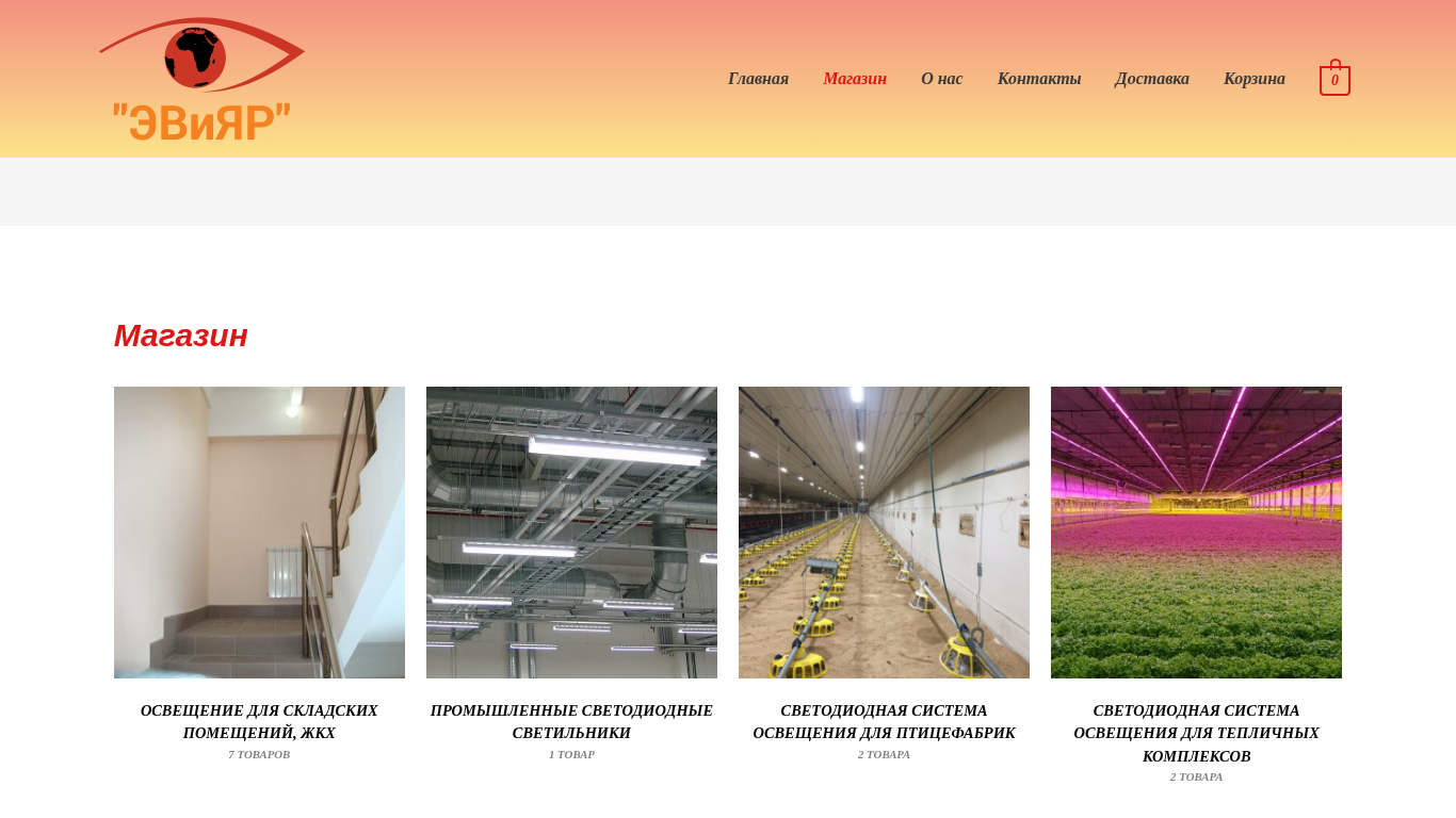 | SEO-описание | Здесь вы можете просмотреть каталог продукции. И приобрести светодиодное освещения для улиц, офисов, теплиц и птицефабрик. |