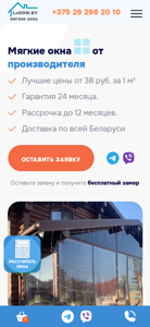 | AI-анализ | --- This online resource, titled "Ледом - Мягкие окна для беседок и веранд в Минске," offers soft windows for porches and terraces in Minsk with delivery throughout Belarus. Ledom guarantees the best prices starting from 38 rubles per square meter, and provides free measurement and installation services. The company uses high-quality materials and ensures a service life of up to 15 years. Visitors can leave a request to receive a discount. The website includes information on services, delivery, repair, materials, and the company. Products include soft windows, PVC curtains (thermal shades), colored trim, and various types of PVC materials. The company also offers a catalog and payment through ERIP. |