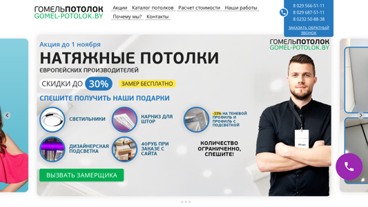 | SEO-описание | Gomel Potolok - фирма по продаже натяжных потолков в Гомеле от европейских производителей. Монтаж натяжных потолков быстро и качественно. Подробнее на сайте и по телефонам: ☏ 8 029 566-51-11, ☏ 8 029 687-51-11 |