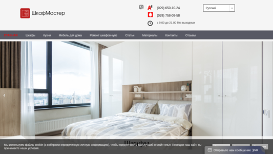 | AI-анализ | The portal shkaf-master.by offers custom-made furniture, including wardrobes, kitchens, and office furniture, in Minsk. The production includes wardrobes-cabinets, kitchens, modular and built-in furniture for homes and offices. Services for repairing wardrobes-cabinets are also provided. Keywords include various types and quantities of wardrobes, doors replacement, sliding doors, affordable wardrobes, wardrobes in the attic, and various furniture types like stools and cabinets. The website provides articles on wardrobe repair, including explanations of common issues and solutions, as well as information on different wardrobe models like Commander, Modus, and Senator. Materials for wardrobe production include DSP, MDF, postforming, lacobeel, glass, and photo printing. The website offers a catalog of various furniture styles, and accepts bank |