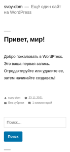 | SEO-лексика | wordpress svoy-dom привет мир сайт рубрики записи один написано 2021 без свежие rss перейти содержимому добро пожаловать ваша первая запись |