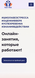 | AI-анализ | --- The portal TestPro.by offers online exam preparation for the 2025 Centralized Testing and Centralized Entrance Exams in Belarus, with a guarantee of admission to universities. The average score of their students is 85+. Prices start from 9 BYN per lesson. Over 1246 students have already enrolled in universities. Free trial lesson available. Courses include Belarusian language, mathematics, chemistry, Russian language, physics, biology, history, and English language for 10-11 and 7-9 grade students. Topics also include summer classes for children, stress-free exam preparation, and first steps in education. Offered subjects include mathematics, physics, biology, chemistry, history, geography, Russian language, Belarusian language, English language, and literature. The website provides access to online lessons and offers |