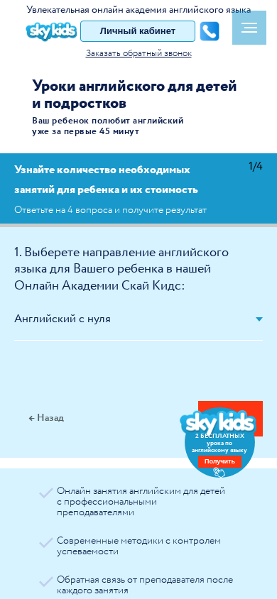 | SEO-описание | Курсы английского языка для детей онлайн от 5 до 16 лет в школе английского Sky Kids (Скай Кидс). Уроки английского для детей онлайн с носителями языка в школе английского языка СкайКидс (SkyKids). |