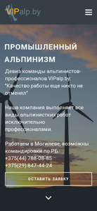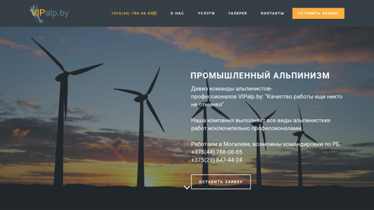 | AI-анализ | The web project "Промышленный альпинизм в Могилеве" (vipalp.by) is a company based in Mogilev, Belarus, providing various height-related services. Their portfolio includes repair and maintenance of wind turbines, installation of metal constructions, cleaning services, sealing of inter-panel joints, tree removal, insulation of facades, installation of metal profiles and sandwich panels, and numerous other services. |