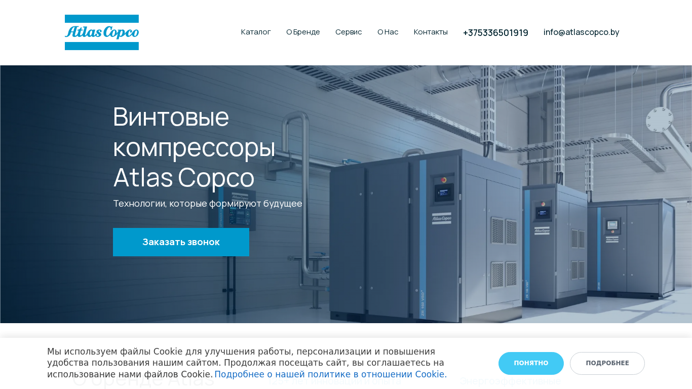 | AI-анализ | The website atlascopco.by is an e-commerce platform for purchasing Atlas Copco air compressors in Belarus. It offers delivery, installation, and servicing for these compressors. The website emphasizes energy-efficient solutions for businesses and provides information on prices and specifications for Atlas Copco compressors on its official site. The brand Atlas Copco, established in 1873, has over 125 years of innovation and experience in creating reliable and efficient technologies. Atlas Copco's equipment helps reduce energy costs by up to 50%, enhancing the ecological footprint of production. The website offers a comprehensive range of solutions from compressors to construction equipment for businesses. Global support is provided through a service network in over 180 countries, ensuring prompt assistance and maintenance. The website includes information on various series and models of Atlas Copco compressors, with |