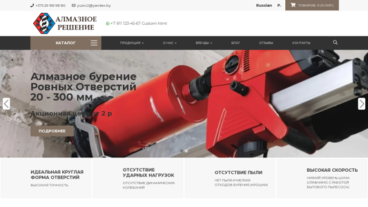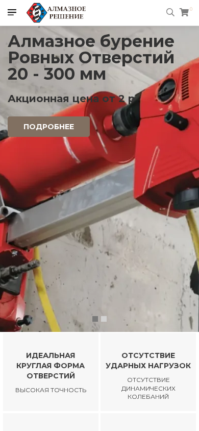 | AI-анализ | This online resource, titled "АЛМАЗНОЕ РЕШЕНИЕ" (Almaznoe Reshenie), is an e-commerce website specializing in diamond drilling and cutting services. The keywords indicate that the main products offered are diamond drilling and cutting tools for various applications, including the drilling and cutting of doors, windows, and floors, as well as canalization, ventilation, and communication installations. The website provides information on diamond drilling techniques for creating even and precise holes without the generation of significant debris or noise. The range of drilling sizes is from 20 to 300 millimeters. The website also mentions a product named "Almaznoe sverlenie Pro," which is a drilling solution. The website is available in Russian and English languages, and offers contacts for inquiries and orders, as well as a blog and customer |