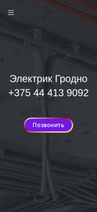 | SEO-описание | ✅ Срочный вызов электрика в Гродно. Услуги электрика по минимальной цене 35 рублей. Вызов на дом, электрика оперативно, надежно, безопасно, современно, с гарантией до 5 лет. Услуги электрика-электромонтажные работы, перенос розеток, прокладка кабеля, штрабление стен под проводку, установка розеток, сборка и установка современного щита, установка светильников, замена автоматов в щитке, ремонт электропроводки, монтаж теплого пола, поиск короткого замыкания, установка и подключение электроплиты и индукционной варочной панели. |