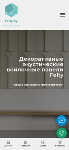 | SEO-описание | Декоративные акустические войлочные панели Felty по выгодной цене. Широкий выбор акустических панелей для стен, потолков и полов. Доставка по Беларуси. Звоните: +(375) 29-622-95-35. |
