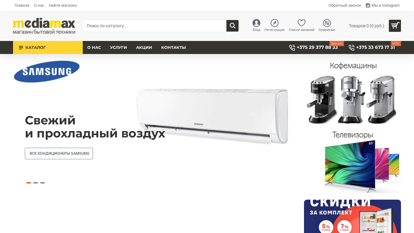 | SEO-описание | Большой каталог бытовой техники в интернет магазине MediaMax. Бесплатная доставка по Гомелю ✔. Цены ниже конкурентов! |