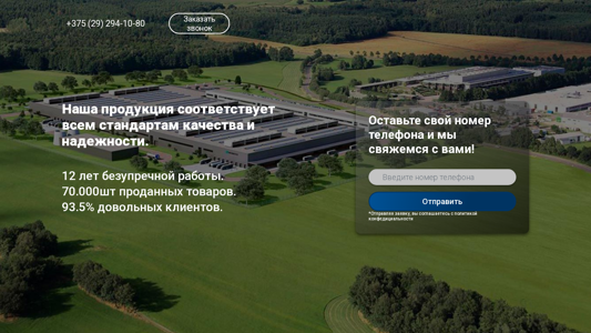 | AI-анализ | The website is a garden equipment store named 'Мирклимата'. Visitors can contact the store by phone at +375 (29) 294-10-80 or leave a request for a callback. The store promises high-quality and reliable products, having sold over 70,000 items and achieving a 93.5% customer satisfaction rate over 12 years of operation. The site includes a privacy policy and return policy. Visitors can also request a callback by submitting their phone number. |