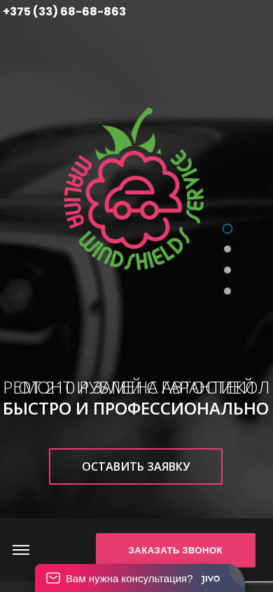 | AI-анализ | This online resource is a website for Malina Servis, a car glass repair and replacement service based in Minsk, Belarus. The title of the website is "Замена лобового стекла в Минске, установка автостекол и ремонт стекла | Малина Сервис" which translates to "Car glass repair and replacement service in Minsk, Belarus - Malina Servis". The description includes information about the quick replacement of windshields in two hours, installation of car glasses with a guarantee, and the repair of cracks and chips. Visitors can leave a request on the website AVTOGLASS.BY or call the phone numbers +375 (29) 689-28-28 or +375 (33) 689-28-28. The website operates from Monday to |