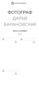 | AI-анализ | This website is for a photographer named Darya Baranovskaya based in Minsk, Belarus. The title of the site is "Фотограф Минск | Дарья Барановская | Обои на телефон" (Photographer Minsk | Darya Baranovskaya | Wallpapers for Phone) and the description is "Индивидуальная и Lovestory съемка в Минске" (Individual and Lovestory Photography in Minsk). The top keywords include "фотограф" (photographer), "минск" (Minsk), "дарья" (Darya), "барановская" (Baranovskaya), "обои" (wallpapers), "телефон" (phone), and "camerist" and |