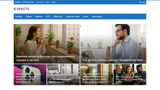 | AI-анализ | The portal vbreste.by provides news for Brest and the Brest region, as well as the world. It offers the most up-to-date information on local topics, reviews, and the latest incidents and events in the city. The website features sections on contacts, maps, housing, technology, community, transportation, sports, and economics. Users can sign in to their account or recover a forgotten password. On October 16, 2025, the website covers topics such as storing items on balconies, issues with touchpads on laptops, Apple technology, door installation, updating PHP, smart sports, innovations in sports industry, flexible bitumen shingles, social responsibility, European investment bank's focus on technology sector, and an overview of financial reports. Previous articles have covered topics like saving the garden from frost, creating a bot for e-commerce, and quick ways to improve |