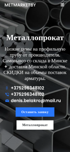 | AI-анализ | The portal offers metal products for purchase in Minsk at competitive prices with an opt-in and on-site option, as well as delivery to the Minsk region. The product range includes various profiles, tubes, angles, channels, and sheets, with a focus on profile tubing. The website provides detailed pricing information and contact details for inquiries and orders. The company's office is located at Selitskogo Street, 17-203, in Minsk. |