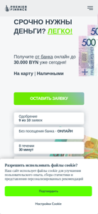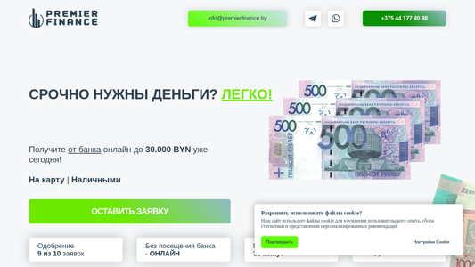 | AI-анализ | --- The web project online-credit.by is a website that offers online credits for individuals in Minsk, Belarus. The website provides various types of loans, including consumer and car credits, cash credits, and credits for businesses. The site uses cookies to enhance the user experience, collect statistics, and present personalized recommendations. The site's cookie policy informs users about the use of cookies and allows them to accept or reject their usage. The website premierfinance.by employs cookies for evaluating the site's performance, determining popular and frequently visited topics and pages, and improving navigation and site usage. Additionally, cookie-files can be used to form a personalized approach based on the user's previous interaction with the site and preferences. Over time, this information allows for user experience improvements. The website uses both necessary and functional cookies. Necessary cookies are essential for users to access the site and |