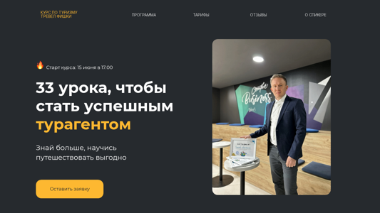 | AI-анализ | The web project "TourProfi.by" is a website dedicated to a tourism course offered by a certain Konstantin Matyushkin. The description mentions a program called "TourProfi," which is a 33-lesson course aimed at helping individuals become successful tour agents and save money on their own travels. The course is designed for both travelers and aspiring tour agents. The main program includes three modules: "Knowledge of the Profession" (consisting of 5 lessons), "Sales in Tourism" (consisting of 5 lessons), and "Country Knowledge" (consisting of 16 lessons, covering Turkey and Egypt). The course offers a certificate upon completion. The website also mentions that individuals can already start saving money on their travels and even work in the tourism industry while undergoing the training. |