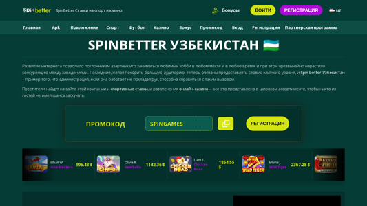 Spinbetter Узбекистан Ставки на спорт и казино ᐉ Регистрация