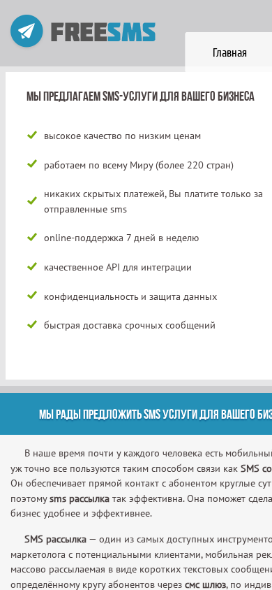 | Название / Заголовок | Массовые SMS рассылки и уведомления по странам Европы, СНГ, Азии и т.д. |