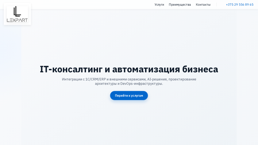 | SEO-описание | Lexpart — IT-консалтинг, интеграции, AI и автоматизация документооборота, Cloud & DevOps. Внедряем CRM/ERP, строим API-интеграции, оптимизируем инфраструктуру. |
