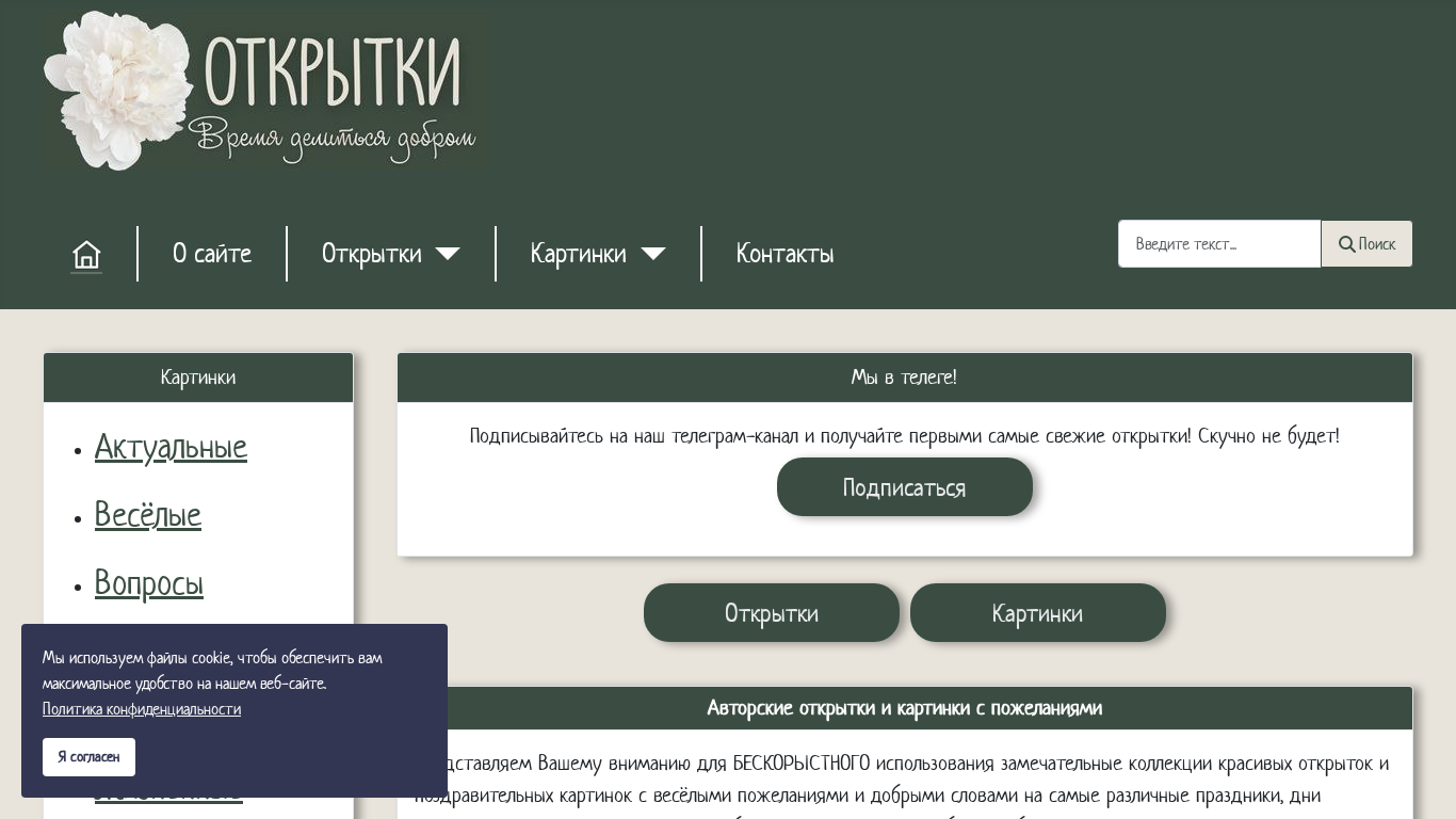 | Название / Заголовок | Авторские открытки и прикольные картинки с добрыми пожеланиями и надписями |