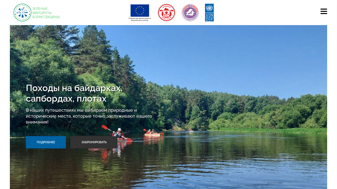 | SEO-описание | Сплавы на байдарках и сапбордах Инициативы «Зеленые маршруты Борисовщины» которая реализуется в рамках проекта «Поддержка экономического развития на местном уровне в Республике Беларусь» |