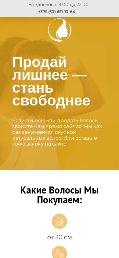 | SEO-описание | ☛ +375 (33) 651-13-84. Купим ваши и детские волосы. Оценим по достоинству. Чем больше длина и объём, тем дороже! ✴️ Не упускайте шанс заработать! |