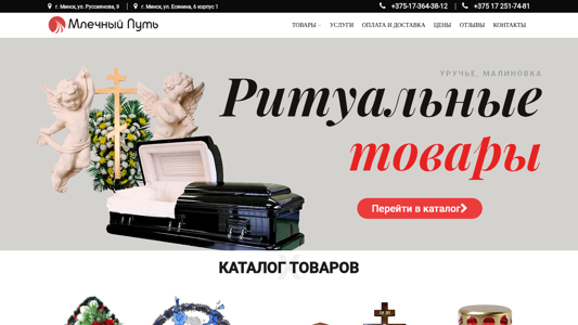 | SEO-описание | Купить ритуальные принадлежности и товары в Минске. В каталоге: гробы, кресты, венки, корзины, одежда и многое другое. |