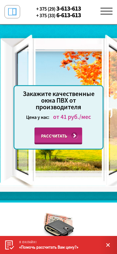 | AI-анализ | --- This online resource is dedicated to providing PVC windows directly from the factory in Minsk and the Minsk region with a 12-year guarantee. The ordering and installation process takes 2-3 days. The website offers various types of PVC windows such as laminated windows for homes and cottages, doors, balconies and loggias, and insulation. The site also provides information on how to choose PVC windows and contact details for the company. Keywords include 'windows PVC Minsk', 'buy PVC windows', 'PVC windows prices', 'plastic windows in Minsk', 'buy plastic window', 'plastic windows prices', 'install PVC windows', 'install plastic windows', 'order PVC windows', and 'order plastic windows'. The site also features sections on balconies and loggias, pricing, and a calculator to help customers estimate |