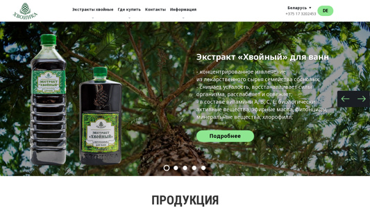 | AI-анализ | The portal "Хвоинка" is a Belarusian business specializing in producing and supplying natural extracts for baths. Their offerings include the "Хвойный" extract, which is a concentrated essence derived from medicinal coniferous plant sources. This extract is known to alleviate fatigue, restore energy, and relax while containing vitamins A, B, C, E, biologically active compounds, essential oils, phytocides, minerals, and chlorophyll. Another product is the "Хвойный изумруд" extract, which is a medical device and serves as an alternative to the "Хвойный" extract. It is commonly used in healthcare facilities for overall health improvement, as well as in complex therapeutic procedures for cardiovascular, digestive, nervous, musculoskeletal, and genitourinary systems. "Хво |