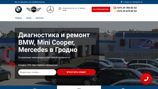 | SEO-описание | Качественный ремонт авто в Гродно. Восстановление всех узлов и механизмов БМВ, Мерседес, Мини Купер. Качественное и быстрое ТО авто. Запишись в СТО прямо сейчас. |