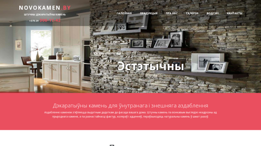 | AI-анализ | --- The website is for a decorative stone company, Novokamen .BY, offering shunned decorative stones for interior and exterior use. The title is "Decorative stone for interior and exterior use NOVOKAMEN .BY". Keywords include "stone", " Decarative stone", "Belarusian", and "prices". The top words are "stone", "decorative stone", "375", and "27.50". The website provides information on the company, its production, and various decorative stone elements with specific dimensions and prices. The stones are described as being indistinguishable from natural stones due to their various textures, colors, and finishes. The company, Novokamen, specializes in the production of decorative stone and pavement. The stone is made using advanced technology with only Belarusian white cement and plasticizer. The dye |
