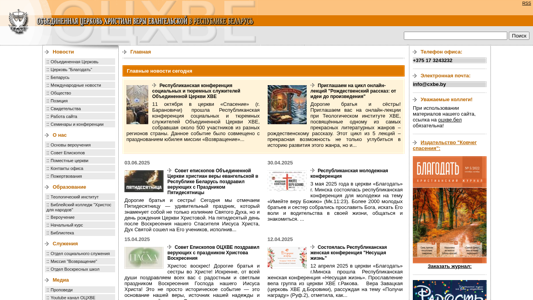 | AI-анализ | The portal "United Church of Christian Evangelical Faith in the Republic of Belarus" is a religious website dedicated to the United Church of Christian Evangelical Faith in Belarus. The website provides information on the church, its teachings, events, and various initiatives. The description tag includes keywords related to the church, its beliefs, and various events. The top words include "церкви" (churches), "благодать" (blessing), "конференция" (conference), "2024" and "2025" (years), and "церковь" (church) among others. The website offers news, seminars and conferences, information on their theological education, social service, and various media channels. The church also has a publishing house and produces a journal. The website includes sections for contacts, donations, and reverse communication |