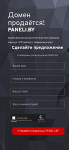 | AI-анализ | The web project PANELI.BY is the official website for the domain name PANELI.BY. The site contains information about the domain being sold, with options for a six-month payment plan or domain rent for 20$\месяц with the right to buy it back. Visitors can make offers and send messages to the domain owner through the provided contact information. The site also offers simple and understandable domain names for businesses and provides contact details for further inquiries via Viber or WhatsApp. |