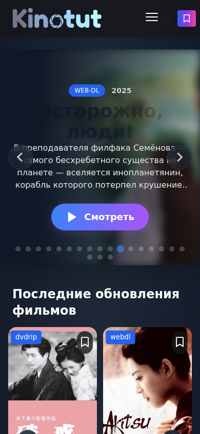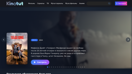 | AI-анализ | This website, titled "КИНО ТУТ" (Cinema Here), offers users the opportunity to watch films online in good quality. The description indicates that users may have already watched numerous films, especially if they are avid cinema enthusiasts, and cannot imagine a night without watching one. The website provides access to a variety of films, series, TV shows, animated series, anime, and cartoons, as well as WEB-DL content from 2022 onwards. The content includes titles like "Король Талсы" (King of Tulsa), "Ходячие мертвецы: Дэрил Диксон" (The Walking Dead: Daryl Dixon), "Поколение V" (The Boys), "Миротворец" (The Watchmen), "Антология монстров" (Mon |