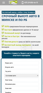 | AI-анализ | This website is an auto buying company in Belarus, specifically in Minisk, with a focus on quick sales and competitive pricing. The company, named "Выкуп авто 24", offers car buying services throughout Belarus, with phone numbers provided for contact in both Minsk and Minsk region. The website highlights various services including buying cars with problems, expensive cars, and even those with no running condition. Potential sellers can request a call, provide details about their car's make, model, and year, and attach photos for an evaluation. The company promises to offer up to 96% of the market value for the car after appraisal. The website includes a blog, FAQ section, and contact information, and promises a quick and legal transaction process. The company also offers free pick-up of the appraiser and claims to have a large customer base. The website caters to |