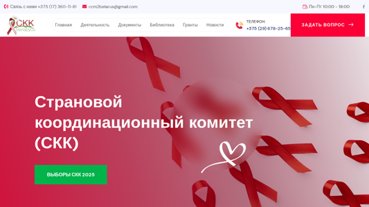 | AI-анализ | --- The portal ccmbelarus.by, also known as the Country Coordinating Committee (СКК), is a Belarusian website primarily focused on coordinating efforts against epidemics, specifically HIV/AIDS and tuberculosis. The website features information on their activities, documents, a library, grants, and news. The committee is involved in various aspects of epidemic prevention, including the preparation of grant applications for funding, the coordination of national and international health programs, and the implementation of sustainable national responses. Additionally, the committee is responsible for managing and efficiently utilizing funds from the Global Fund, as well as overseeing the transition to government financing for anti-HIV/AIDS and tuberculosis measures. The website includes sections for improving the committee's activities, communication policies, and financing programs, as well as an inter-sectoral and inter-agency coordination role in planning |