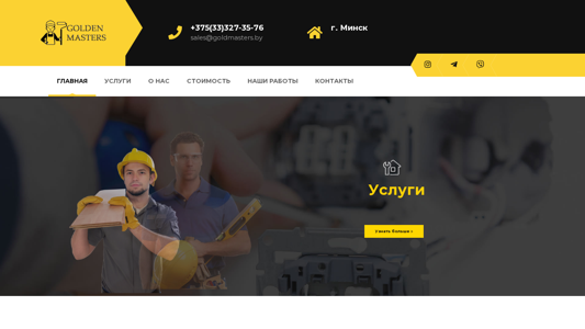 | AI-анализ | --- This website, titled "goldmasters.by", is a home services business offering various repair, installation, and maintenance services. The description mentions the keywords "ремонт" (repair), "работы" (works), "установка" (installation), "стоимость" (price), "мебели" (furniture), "час" (hourly), "услуги" (services), "сборка" (assembly), "подключение" (connection), "мастер" (master), "byn" (Belarusian currency), and "нас" (us). The top words include "ремонт" (repair) and "работы" (works) with a frequency of 13 and 11 occurrences, respectively. The website provides services like electrical, plumbing, carpentry, and stucc |