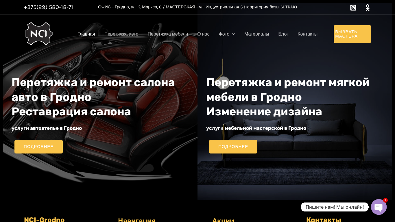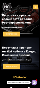 | AI-анализ | The website, NCI-Grodno, is a professional auto and furniture upholstery workshop located in Grodno, Belarus. The site offers services for the design change and repair of both automobile interiors and soft furniture. High-quality materials and a guarantee are provided under contract. The main menu includes sections for auto upholstery work, motorcycle upholstery, and furniture upholstery. Other sections include a catalog of completed projects, information about the company, a photo gallery, and a blog. The contact information is also provided, including a phone number and office location. |