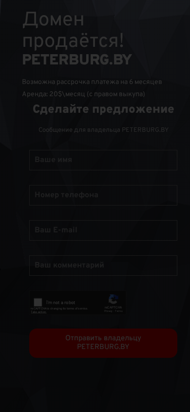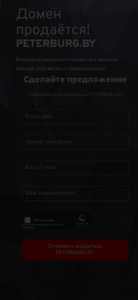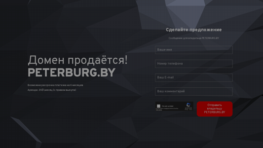 | AI-анализ | The website PETERBURG.BY is the official site for the domain name. The description tag indicates this fact. The top words on the page include "peterburg," "domain," "прода," "ття," "возможна," "рассрочка," "платежа," "месяцев," "аренда," "месяц," "правом," "выкупа," "сделайте," "предложение," "сообщение," "владельца," "отправить," "владельцу," and "2025." The page content includes information about the sale of the PETERBURG.BY domain name, with options for a six-month payment plan and rent-to-own at a monthly rate of 20$. Visitors can make an offer and send a message to the domain owner through |