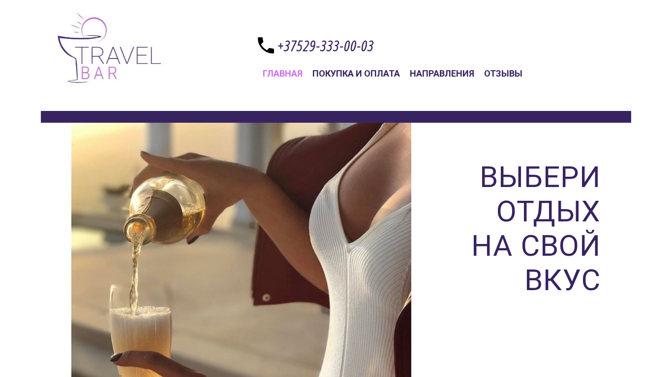 | AI-анализ | This website is a travel agency offering various tours and hotel bookings. The main page features information about the services provided, including consultation, tour selection, and 24/7 support. Users can choose from multiple destinations, such as Turkey, Egypt, and the UAE, with various dates available. The website collaborates with reliable tour operators and hotels, ensuring quality services. Payment methods include cash, bank cards, online payment, and installment plans. Additional services include travel insurance, early booking, and air ticket and hotel reservations. Popular destinations include Rixos Sungate, Address Beach Resort, and Rixos Premium Magawish Suites & Villas, each with their unique features and prices. The website is registered under the Belarusian .BY domain with the UNP number 193140492 and can be contacted through the provided phone number and email address. The |
