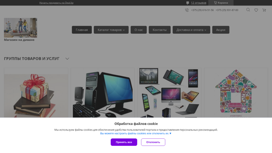 | AI-анализ | The website "Магазин на диване" (Furniture Store) offers a wide range of goods and services, including contacts, products, and prices. The store sells items in categories such as books and office supplies, computers and electronics, household appliances, building materials, and personal care products, among others. Customers can purchase items with discounts up to 60%. The website also features a section for certificates and jewelry, as well as construction services. The store can be contacted via phone numbers +375 (29) 616-51-56 and +375 (25) 931-87-00. |