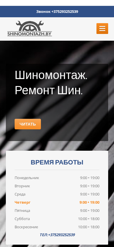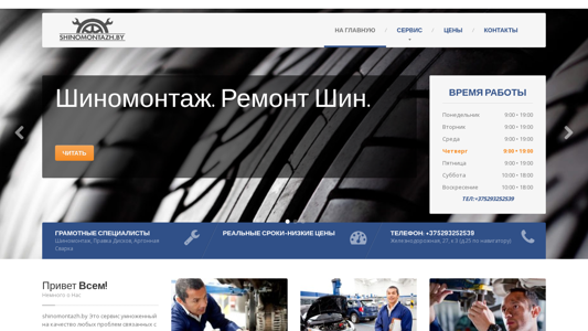 | AI-анализ | --- The portal shinomontazh.by offers wheel repair and tire services in Minsk. Keywords include disk repair, tire repair, and conditioner repair. The website mentions services for both steel and cast disks, as well as conditioner refills. The business also specializes in argon welding. Contact information includes a phone number and an address. The business is open from 9:00 to 19:00 from Monday to Saturday and 10:00 to 18:00 on Sunday. Services offered include wheel balancing, tire repair, and conditioner repair. The business prides itself on having knowledgeable and skilled specialists, and promises quick turnaround times and reasonable prices. The website includes a contact form for inquiries. |