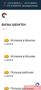 | AI-анализ | --- This online resource, titled "KAPIBARA," offers information on obtaining visas and related services for various countries including Spain, Poland, and Greece, among others. The website appears to focus on visas for Belarusian citizens, as evidenced by the frequent use of the .BY domain and Belarusian phone numbers. The keywords include "visas," "Schengen," "Poland," "Spain," and various prices for different types of visas. The website also mentions ways to contact them for further inquiries and provides multiple phone numbers and email addresses. The services offered include visas for various purposes and countries, as well as information on residency and citizenship in some cases. The website has a preloader feature and is available in both Belarusian and Russian languages. |