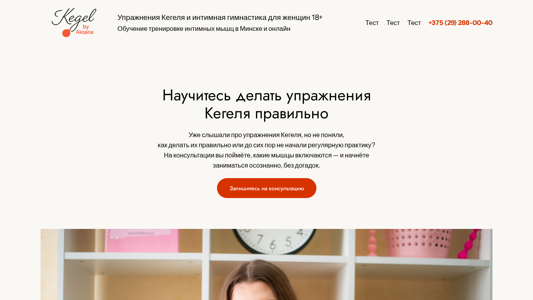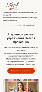 | AI-анализ | The web project "Kegel.by" offers education and training on intimal muscle exercises for women aged 18 and above in Minsk, Belarus. The website provides information on Kegel exercises and intimate gymnastics, including consultations, both online and offline, individual or group sessions, as well as tests. Users can learn how to perform these exercises correctly and understand which muscles are involved. The website offers various formats, such as individual and group consultations, online or on-site, and a video course (still in development). The online consultation includes a Google Meet session lasting 1.5 hours, which covers theory, practical work, and personalized plans. The master-class in an online group consists of up to 3 hours of theory and practice. The website also offers an on-site training session in Minsk, with the possibility of tactile feedback through a trainer' |