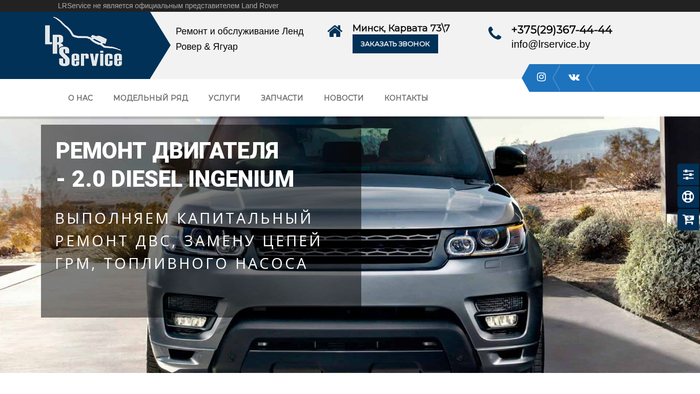 | AI-анализ | --- This online resource is dedicated to providing repair, maintenance, and enhancement services for Land Rover and Jaguar vehicles in Minsk, Belarus. The website offers diagnostics, repair, and maintenance for Land Rover and Jaguar models, as well as a catalog of replacement parts. The company guarantees their work and can be reached by phone at +375(29)367-44-44. The website includes sections on the model range, technical specifications, and services offered. LRService is not an official representative of Land Rover, but rather a separate entity offering repair and maintenance services for Land Rover and Jaguar vehicles in Minsk. |
