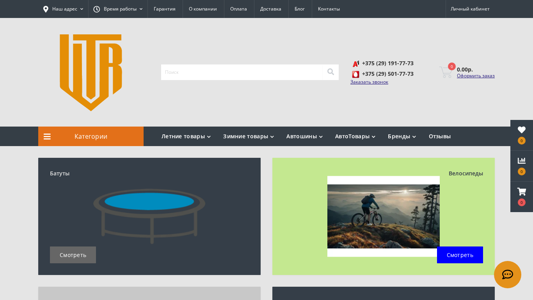 | AI-анализ | The portal Ultrashop.BY is an e-commerce website specializing in the sale of bicycles, tricycles, scooters, car tires, and home goods at affordable prices. The site offers a variety of bicycles, including mountain, city, BMX, and children's models, as well as accessories, tires, and tools for their maintenance. Additionally, customers can find automotive items such as tires and auto supplies. The website provides delivery services and guarantees the quality of its products. Contact information includes phone numbers and an email address. |