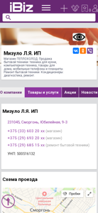 | AI-анализ | The portal is a retail business, "Мизуло Л.Я. ИП - Магазин ТЕПЛОХОЛОД," located in Smorgon, Belarus, at Юбилейная 9-3. It offers sales of household appliances, including kitchen appliances, computer technology, home goods, mobile phones, and tablets. The business also provides repair services for household appliances, specifically for air conditioners, with diagnostics and repair available. Contact information includes three phone numbers for the store and the repair department, and the company's Unified State Register number is 500516132. Store hours are Monday through Friday, 9:00 AM to 6:00 PM, with no lunch breaks. The business is listed under the categories of household appliance repair and sales in Smorgon, Belarus. |
