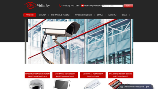 | AI-анализ | The website is a security and video surveillance solutions provider in Belarus, specializing in the design, installation, and mounting of security systems. The main focus is on video surveillance, offering IP video recorders, IP cameras from various brands such as HiWatch, Dahua, and XVI, as well as video doorphones. The site also covers installation services for IP video recorders, HD video recorders, AHD cameras, and video doorphones, as well as the sale and installation of doorphones and intercom systems. The company provides technical support and maintenance for all the offered products. The website is called vidim.by and offers contact information for inquiries. |