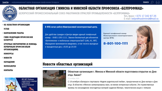 | AI-анализ | The web project "Belarusian Professional Union of Workers in the Industry 'Belprofmash'" (minsk.belprofmash.1prof.by) is an informational portal for the federation of trade unions in Belarus, specifically the regional organization of the union in Minsk and the Minsk region. The site provides information on the structure and membership of the local branch, as well as its activities, including labor protection, organizational work, and press services. The union also offers various resources such as bylaws, position papers, and methodological recommendations. There is a press service, and the site features news on the union's activities, as well as various events and contests. The union also operates a monitoring center for inter-industry issues, with a single phone number for public inquiries. The site contains information on local events, such as open house events for Mother' |